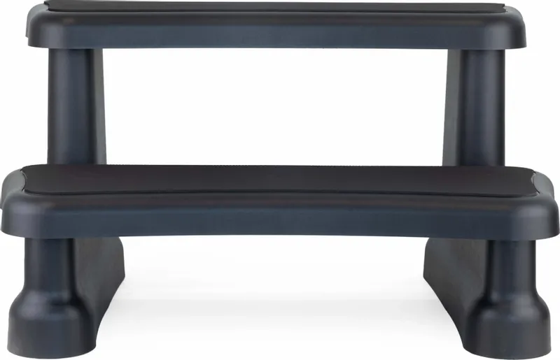 En dan bedoelen we ook echt makkelijk. Zet de 2 poten neer. Pak een traptrede. Klik hem eerst op de ene poot en daarna op de andere poot. Of doe beide tegelijk. Maar zorg dat je echt een klik hoort. Doe vervolgens hetzelfde met de tweede traptrede. Tadaa! Je spa trap is klaar om gebruikt te worden. Appeltje eitje dus.